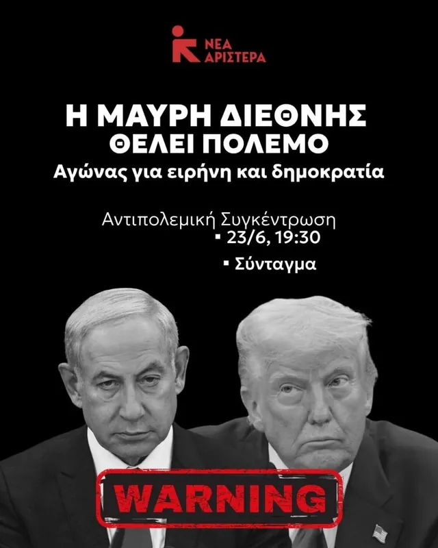 Είμαστε με την ειρήνη, για την οποία όμως χρειάζεται να αγωνιστούμε ενάντια στον πόλεμο. Μαζικά, μαχητικά να σταθούμε απέναντι στα σχέδια της μαύρης διεθνούς, που έχει βασικούς πυλώνες τον Τραμπ και τον Νετανιάχου και που οδηγεί τον κόσμο σε μια γενικευμένη σύρραξη.