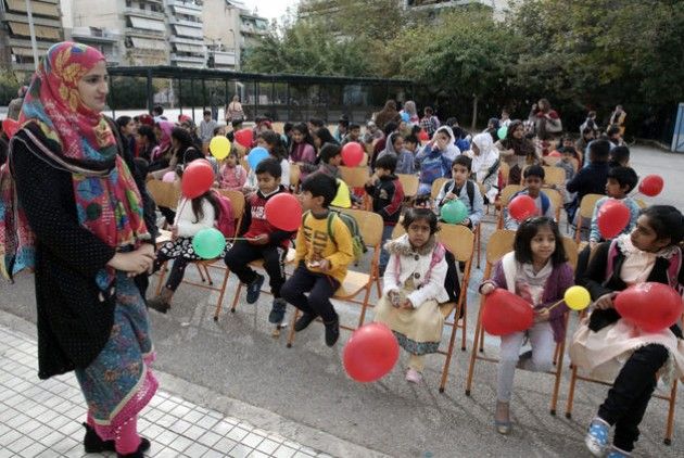 | Από τη γιορτή υποδοχής των Πακιστανόπουλων στις 12 Νοέμβρη. Το δικαίωμα των παιδιών μεταναστών στη μόρφωση υπερασπίστηκαν οι δύο φοιτητές, που τώρα βρίσκονται εγκαλούμενοι | |
