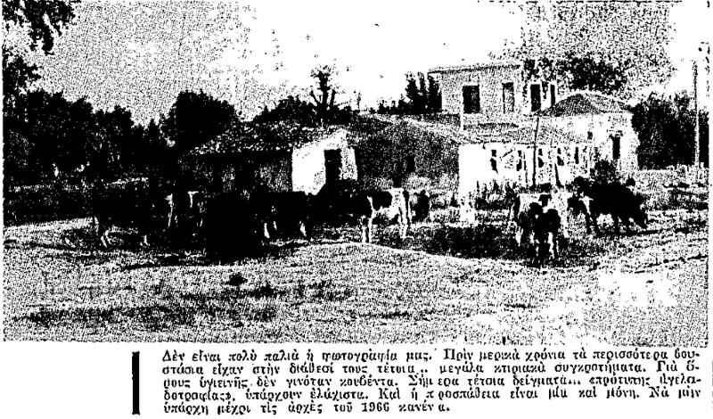 Σύμφωνα όμως με άλλες ειδήσεις από την εφημερίδα «Ελευθερία», μαθαίνουμε ότι 2000 βουστάσια όπου εκτρέφονται 10.000 αγελάδες της περιοχής πρωτευούσης αποφασίστηκε να μεταφερθούν στην Κωπαϊδα (29-3-1962). Επίσης στις 19/12/1964, ότι ξεκινούν άμεσα χαμηλότοκα δάνεια από ΑΤΕ για μεταφορά βουστασίων και ακόμα στις 4/3/1964, ότι δόθηκε ολιγόμηνη παράταση της μεταφοράς βουστασίων από τον υφυπουργό υγιεινής.