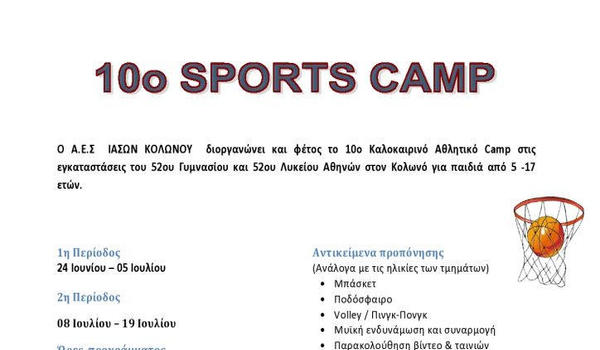 Την Δευτέρα 30 Μαΐου 2022 ξεκίνησαν οι εγγραφές για το 13ο καλοκαιρινό camp του Ιάσονα Κολωνού. Οι εγγραφές γίνονται καθημερινές από 19.00 έως 21.00.