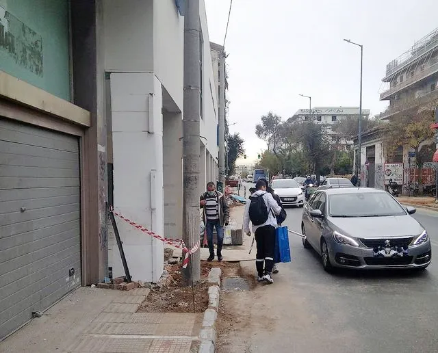 Τον Μάιο του 2022 είχαμε επισημάνει, έγκαιρα, με γραπτό ερώτημα προς τις αρμόδιες υπηρεσίες και τον αρμόδιο αντιδήμαρχο, το σοβαρό πρόβλημα που θα δημιουργούνταν αν δεν διορθώνονταν ο σχεδιασμός του ρυμοτομικού στο συγκεκριμένο σημείο. Το πρόβλημα ξεκινά από μια απαράδεκτη τροποποίηση του ρυμοτομικού επί επταετίας (1969), την οποία δεν ασχολήθηκε κανείς έκτοτε, ούτε δυστυχώς και τώρα, να διορθώσει. Το αποτέλεσμα σήμερα θα ήταν κωμικοτραγικό, αν δεν αποτελούσε εικόνα ντροπής για μια σύγχρονη πόλη και εστία σοβαρού κινδύνου. Με έκπληξη διαπιστώνουν οι κάτοικοι και οι διερχόμενοι ότι η κίνηση επί του πεζοδρομίου, σε έναν κεντρικότατο άξονα όπως η Λιοσίων, διακόπηκε τελείως. Στο στενότερο σημείο, το πεζοδρόμιο έχει ένα πλάτος της τάξης των 60 εκ, εντός των οποίων είναι φυτεμένη μια κολώνα της ΔΕΗ, ενώ τον όποιο ελιγμό δυσχεραίνει ακόμα περισσότερο κι ένα φρεάτιο απορροής ομβρίων!