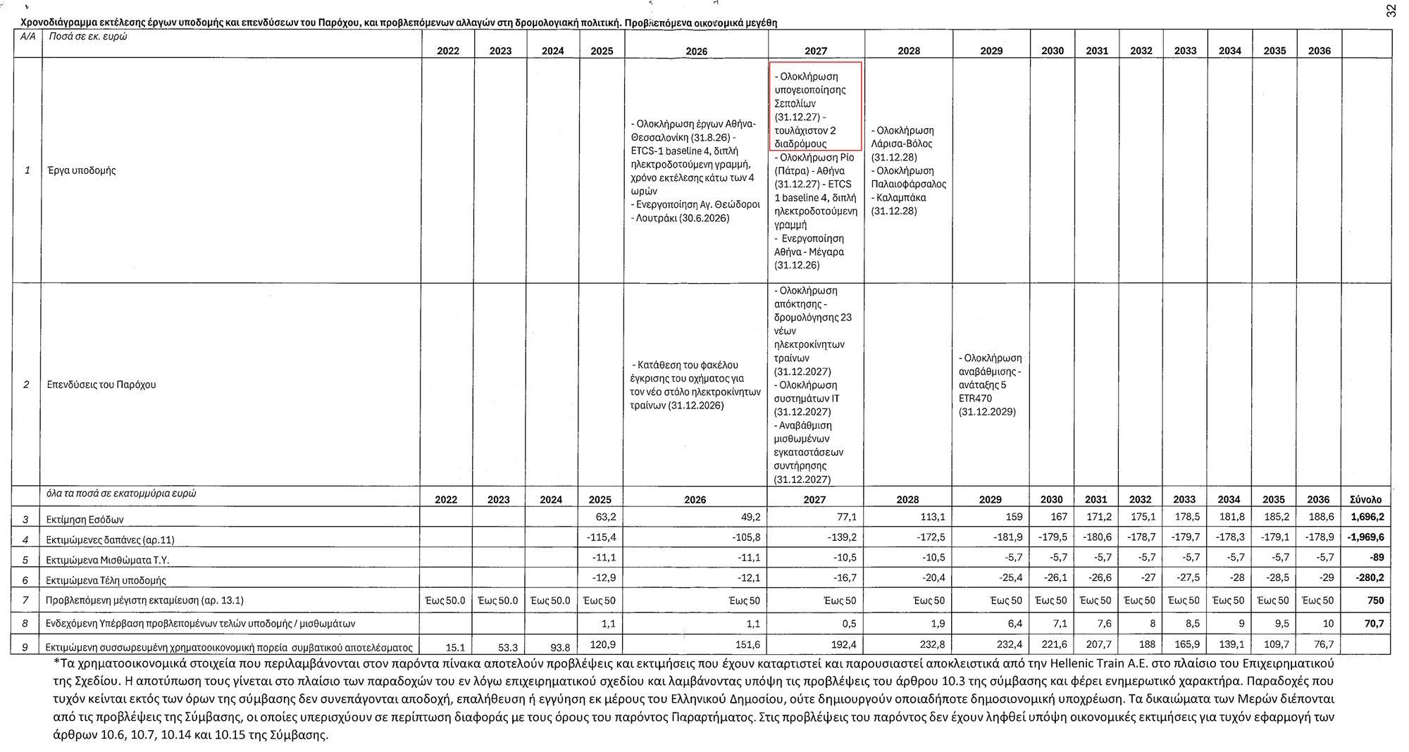 Εν τω μεταξύ δημοσιοποιήθηκε η πρόταση της επιτροπής για την κύρωση της τροποποίησης της σύμβασης μεταξύ Υπ. Υποδομών και Μεταφορών και της Hellenic Train, στο περιεχόμενο της οποίας, υπάρχει η σαφής δέσμευση του Υπουργείου για ολοκλήρωση τουλάχιστον των δύο υπογειοποιημένων σιδηροδρομικών γραμμών μέχρι 31/12/27.