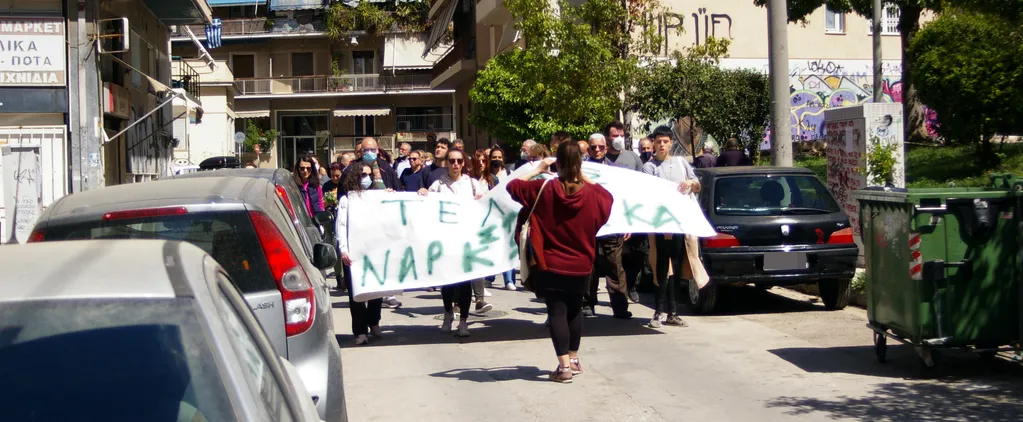 Κατά την διάρκεια της συγκέντρωσης διατυπώθηκε η πρόταση να πραγματοποιηθεί πορεία από τους δρόμους της περιοχής έως το αστυνομικό τμήμα του Αγίου Παντελεήμονα, όπου θα επιδοθεί και ψήφισμα. Πρόταση που υλοποιήθηκε με μεγάλη επιτυχία, καθώς τα συνθήματα και οι φωνές διαμαρτυρίας των συγκενρωμένων έφτασαν σε αρκετούς δρόμους της περιοχής.